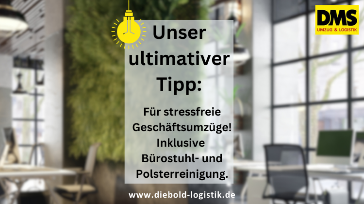 Ein Büroumzug stellt besondere Anforderungen an Planung und Durchführung. Bei Diebold Umzüge & Logistik bieten wir nicht nur einen umfassenden Umzugsservice für Unternehmen, sondern sorgen mit zusätzlichen Dienstleistungen wie der Bürostuhl- und Polsterreinigung dafür, dass Ihr neues Büro sofort einen frischen und einladenden Eindruck macht.